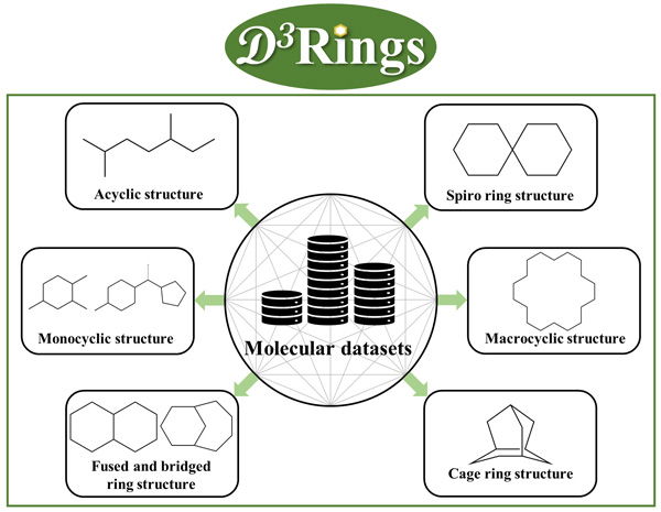 The continuous exploration of the chemical space of molecules to find ligands with high affinity and specificity for targets of interest is an important topic in drug discovery. Cyclic compounds with novel structures and diverse scaffolds provide clues for drug design. However, no studies have been conducted to systematically organize and discuss the classification of cyclic compounds in drugs or drug-like compounds. D3Rings is a new method to identify and classify the characteristic cyclic compounds. It was developed for the purpose of screening acyclic compounds, monocyclic compounds, spiro ring compounds, fused and bridged ring, cage ring compounds, macrocyclic compounds from datasets and compute the maximum number of fused rings in the molecules.